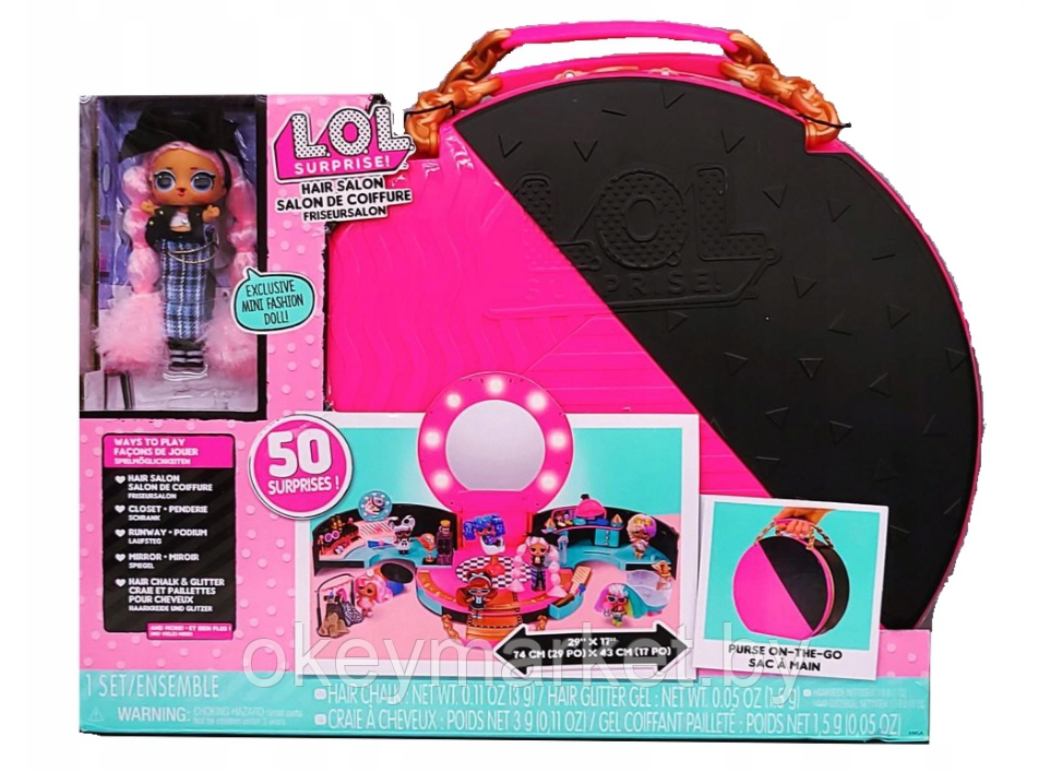 Куколки L.O.L. SURPRISE! собираются на самую лучшую вечеринку этого года. Только Вы сможете их подготовить к этому празднику и сделать их самыми яркими и стильными. Встречайте игровой набор с куклой L.O.L. SURPRISE! серии J.K." - САЛОН КРАСОТЫ. Это раскладной набор в виде компактной сумочки черно-розового цвета, с ручкой-цепочкой.