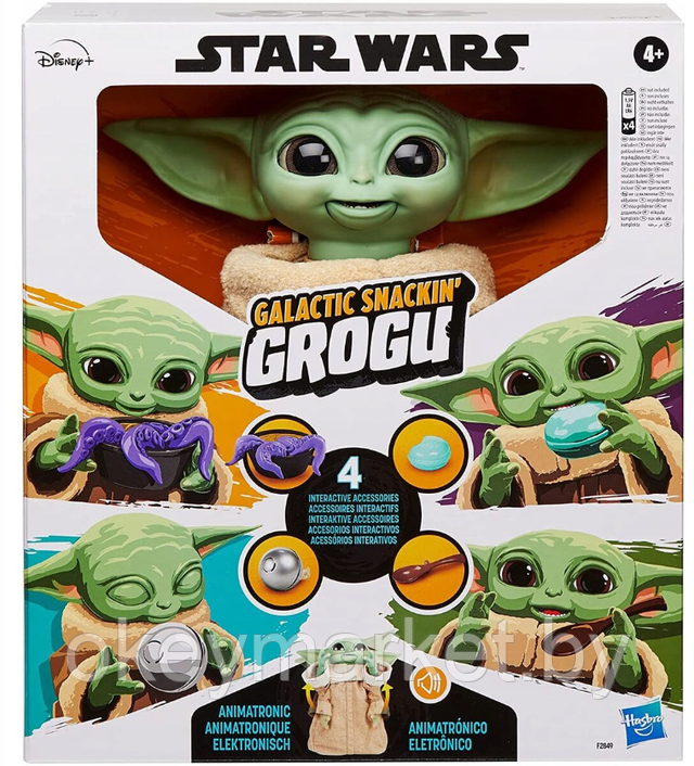 - Аниматронная игрушка: аниматронная фигурка Star Wars Grogu с галактической закуской имеет высоту более 23 см. Он выполняет полностью автоматические движения головой, ушами и руками, Более того, этот Мандалорец закрывает и открывает глаза!