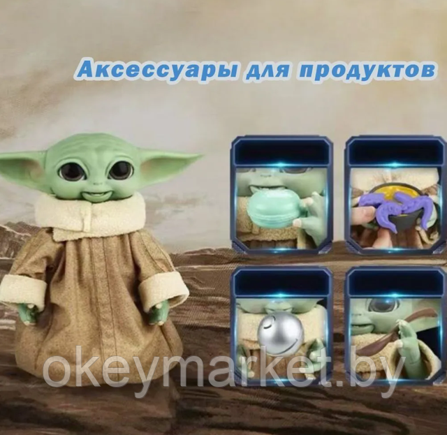 Интерактивная фигурка Grogu делает второй сезон сериала The Mandalorian реальностью-фигурка имеет аниматронные движения и удивительные аксессуары!Фигурка имеет высоту более 23 см и двигает головой, ушами, руками, а также закрывает и открывает глаза.