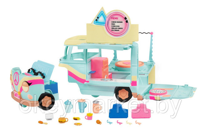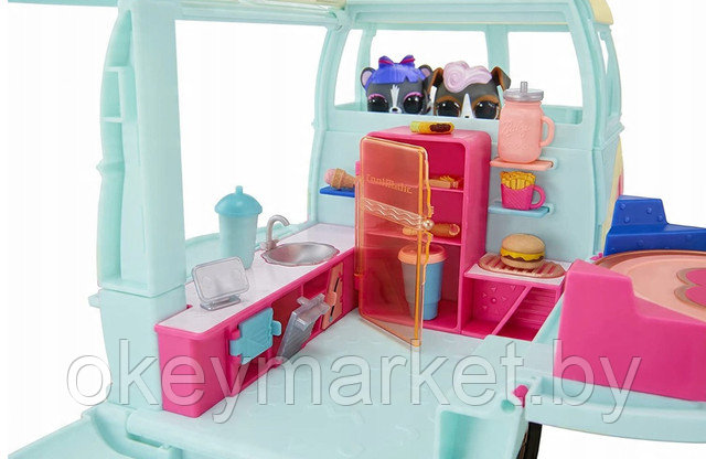 После игры все предметы можно удобно сложить внутрь кемпера, что делает его удобным для хранения и переноски. Набор совместим с куклами и питомцами LOL Surprise, которые приобретаются отдельно.