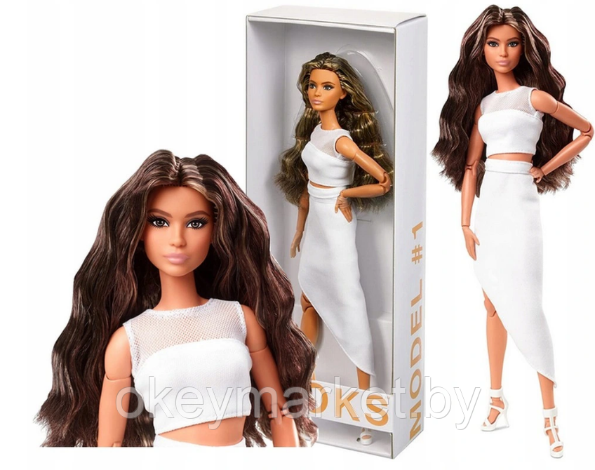 Барби отличается уникальными чертами лица и темными волнистыми волосами с золотистым отблеском